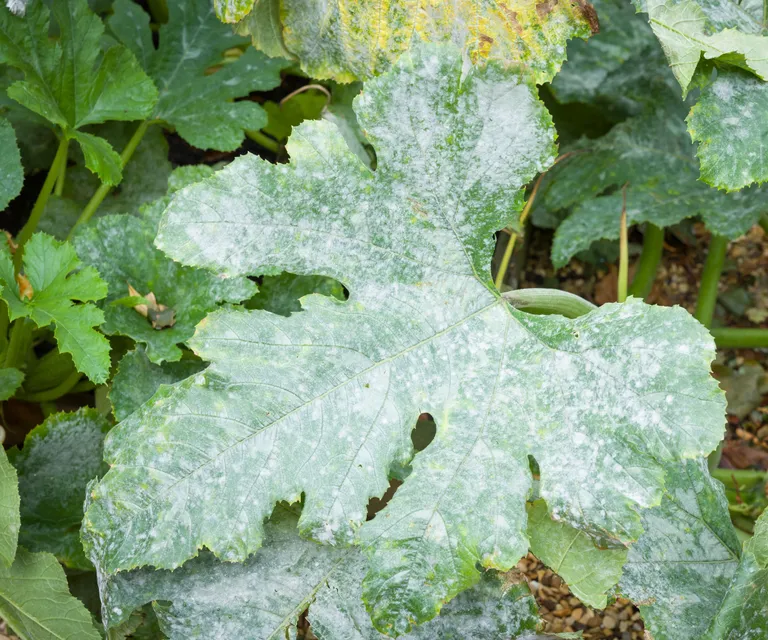 No garden problem list is complete without powdery mildew. This common veggie disease spreads via wind and water, thriving in cool nights and high humidity. A telltale white dusting coats leaves, stems, and flowers.