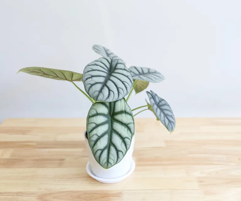 The ‘Silver Dragon’ alocasia is a real showstopper. Its dark leaves have a metallic silver sheen that shifts under light, while deep purple-black veins give it stunning depth. This variety is in high demand, so tracking one down can be tricky—your best bet is a trusted online seller.